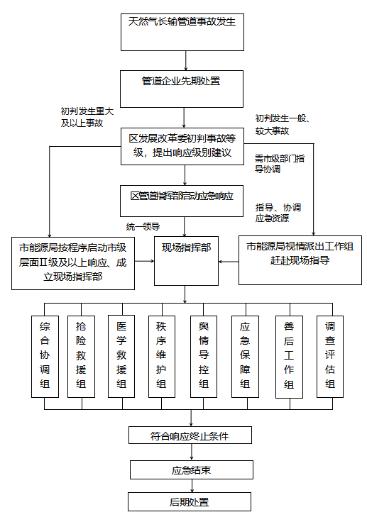 级响应由区发展改革委提出启动响应的建议,由区管道指挥部指挥长(区政府分管领导)启动,并立即报请市