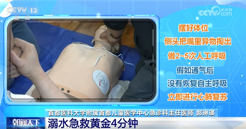 医生介绍,孩子发生溺水后不要倒挂拍背、奔跑摇晃,这样不仅无效,反而延误了抢救的黄金时间。