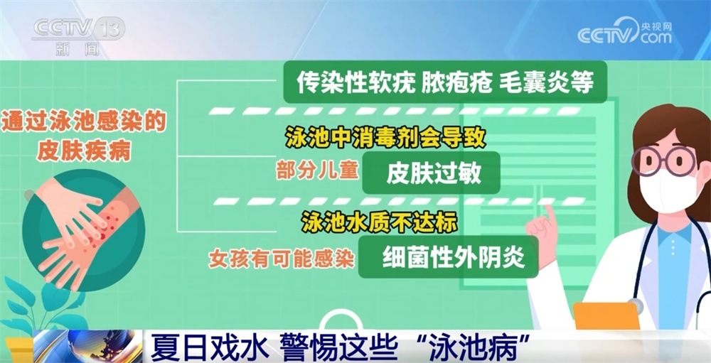 可以通过泳池感染的皮肤疾病有传染性软疣、脓疱疮、毛囊炎等,泳池中的消毒剂也会导致部分儿童皮肤过敏。如果泳池水质不达标,女孩有可能感染细菌性外阴炎。
