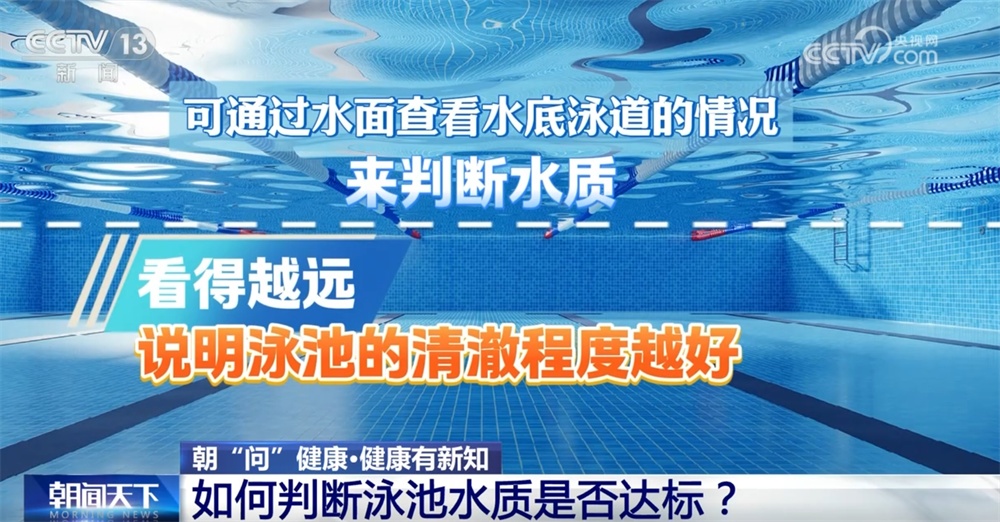 游离性余氯是指泳池水经过加氯消毒后水中余留的氯成分,国标要求是0.3到1.0毫克每升。市民游泳时可以注意一下游泳场馆的当天公示。除此之外,也能够最终靠水面查看水底泳道的情况来判断水质。看得越远,说明泳池的清澈程度越好。还可以把泳池里的水稍微打起水花,如果这些小水泡能在10到15秒内自行消散,就说明池水的氧化能力是可以的。