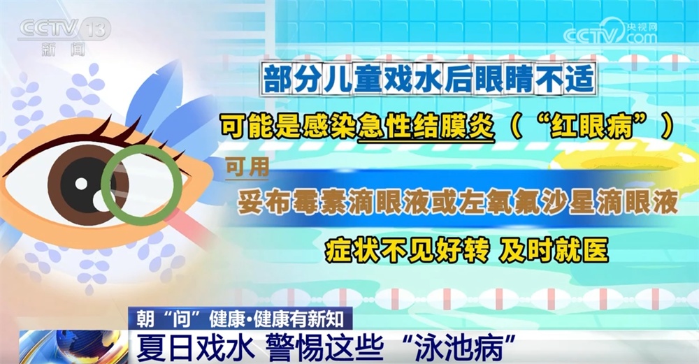 还有部分儿童戏水后眼睛不适,可能是感染了急性结膜炎,也就是“红眼病”,可用妥布霉素滴眼液或左氧氟沙星滴眼液,如果症状不见好转,及时就医。
